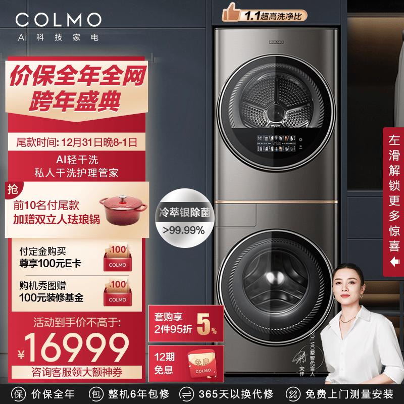 COLMO云墅干洗护理空间站 滚筒全自动 洗烘一体机 变频电机 智能投放 超薄全嵌 AI轻干洗 CLGHZ20DL价格:16999.00元!