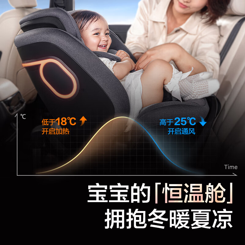 3、非常好用,可以左右90°悬停,语音开启通风加热,还送了防磨垫,宝宝坐着完全不会哭