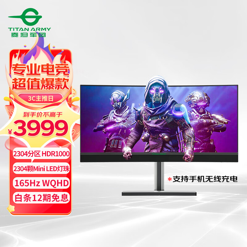 泰坦军团 34英寸 mini-LED带鱼屏 165Hz WQHD HDR1000 Type-C 90W KVM 旋转升降 电竞电脑准4K显示器 M34E7R价格:4399.00元!