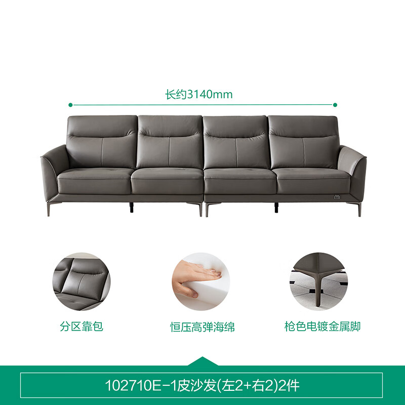 全友家居 真皮沙发客厅现代简约沙发小户型直排沙发皮艺沙发102710E价格:5427.00元!