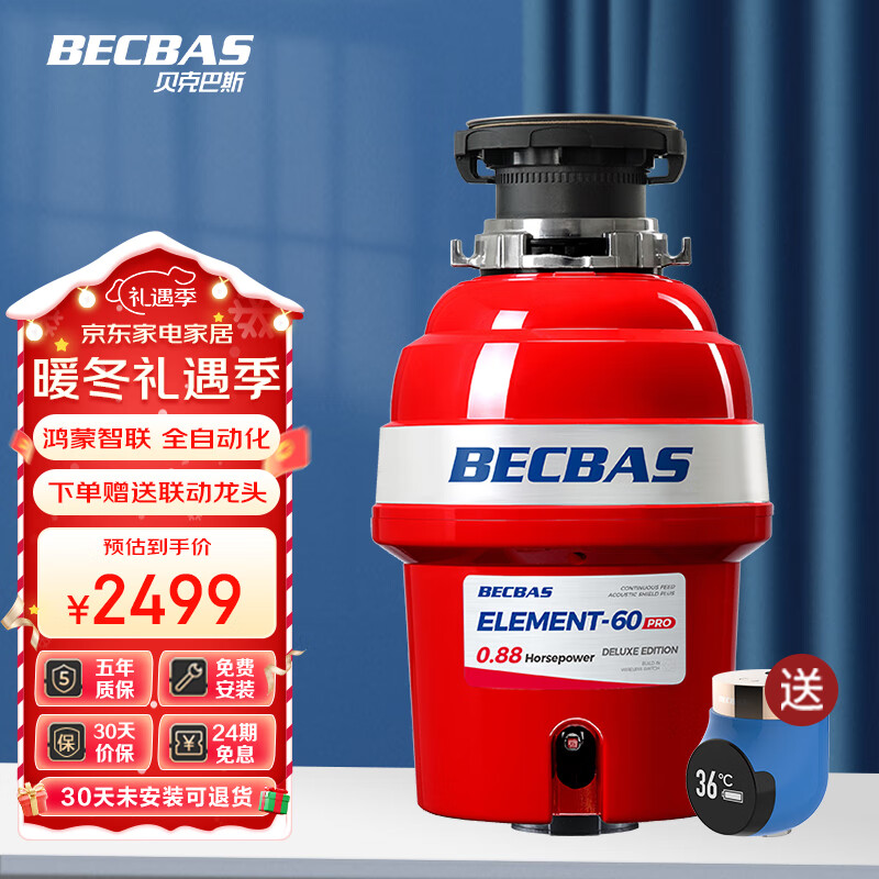 贝克巴斯 BECbase60PRO 厨余垃圾处理器全自动进水调速关机 鸿蒙家居智联价格:2699.00元!