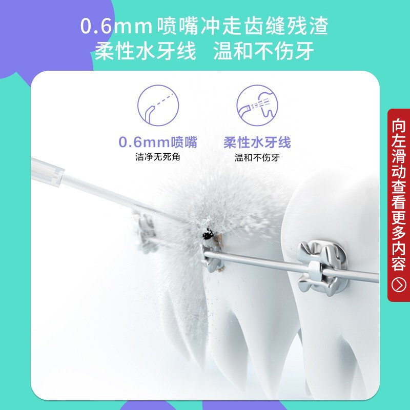 5、贝医生水牙线很好用而且外观设计简单小巧颜色也很漂亮操作简单搭配漱口水戴牙套的孩子上学带着实在太方便了
