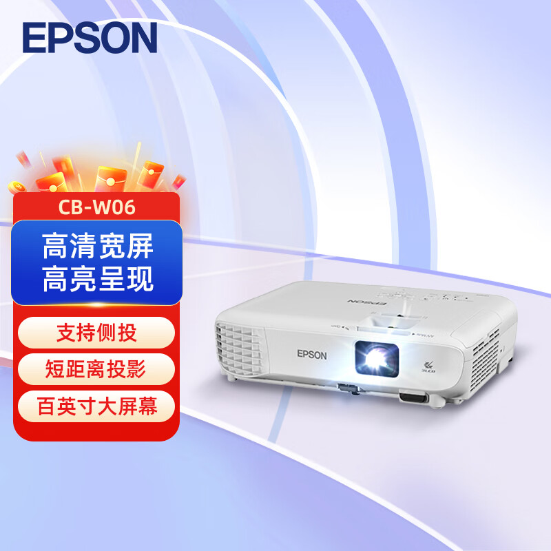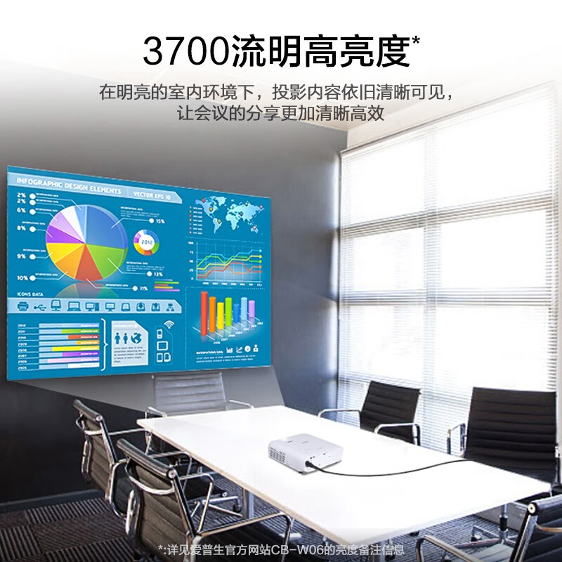 爱普生(EPSON) CB-W06 投影仪 投影机办公 培训(高清WXGA 3700流明 短距投影 支持侧投)价格:3999.00元!