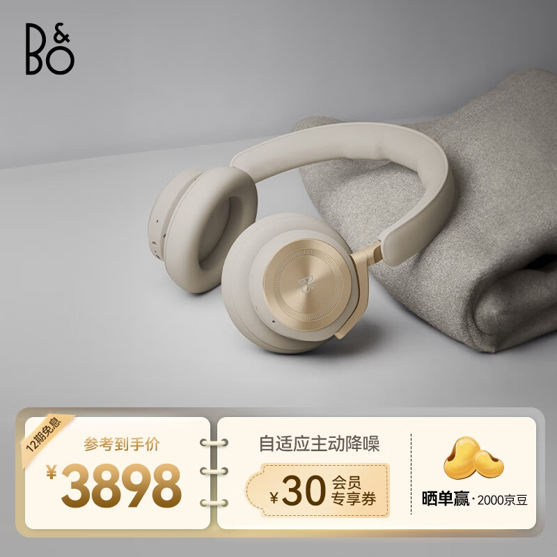 B&O Beoplay HX头戴式蓝牙无线耳机 bo自适应主动降噪音乐耳机/耳麦 Gold Tone金色 节日礼物价格:3898.00元!