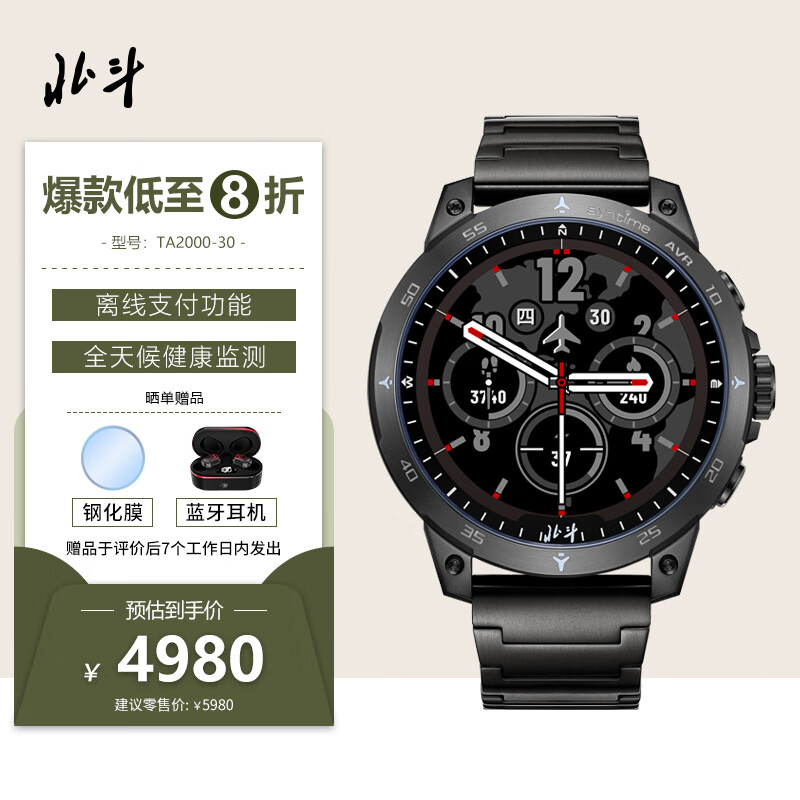北斗手表syntime3 TA2000-30卫星授时定位太阳能支付音乐心率商务腕表价格:4980.00元!