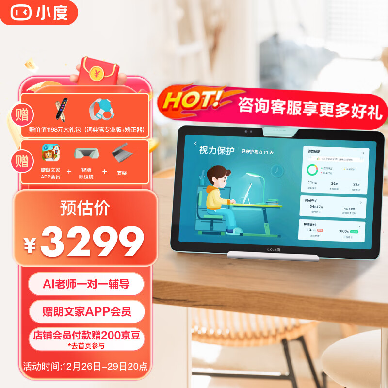 小度学习平板Z20Pro智学版(6+128G)小学初中高中学习机家教机百度文心大模型AI精准学 郎文家会员 家长管控价格:3299.00元!