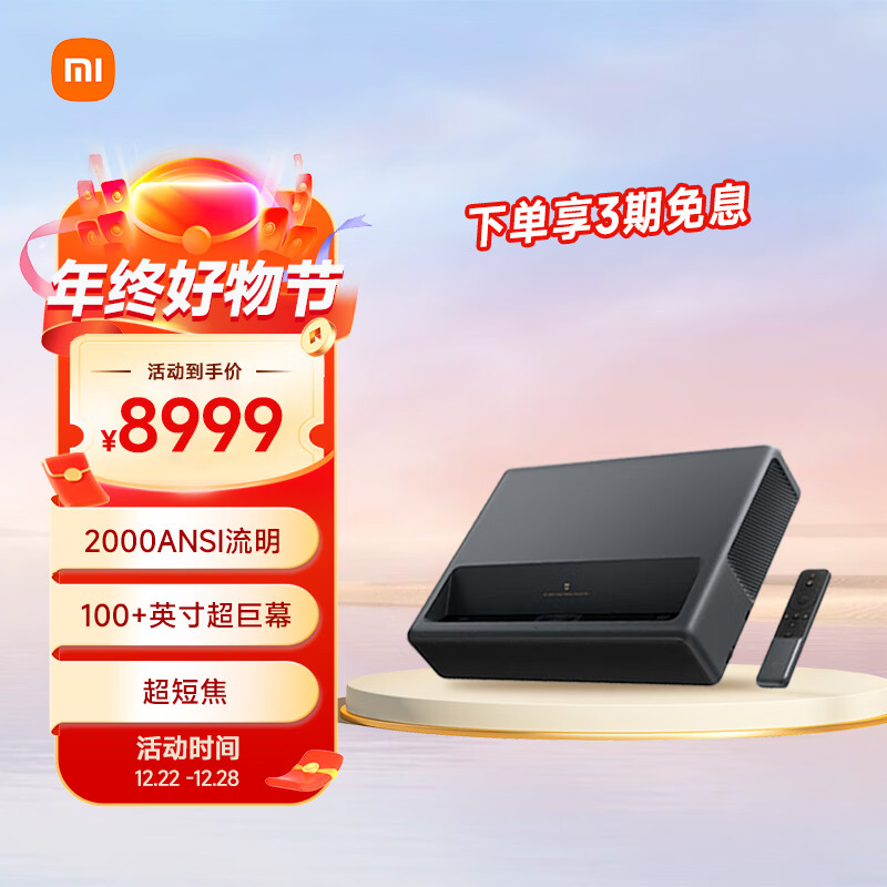 小米 米家激光投影1S 4K 投影仪家用 激光影院 家庭影院 (4K画面 2000ANSI 亮度升级 高保真音箱 )价格:8999.00元!