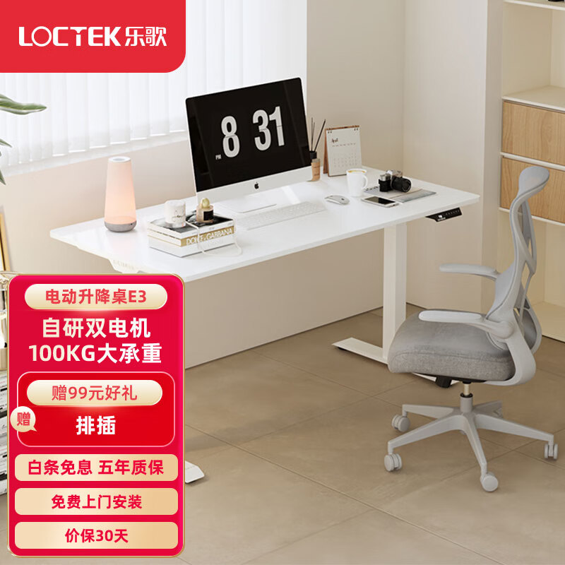乐歌电动升降桌电脑桌双电机站立办公家用写字书桌 E3/1.8m雅白色套装价格:2339.00元!