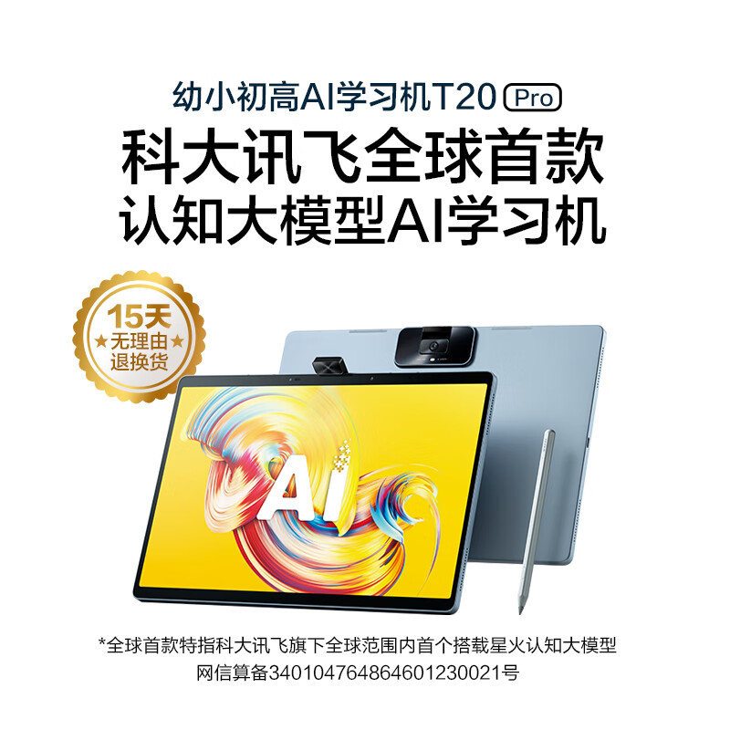 科大讯飞AI学习机T20 Pro (8+512GB) 星火认知大模型 学生平板小学到高中 全龄段智能护眼家教机 13.3英寸价格:8999.00元!