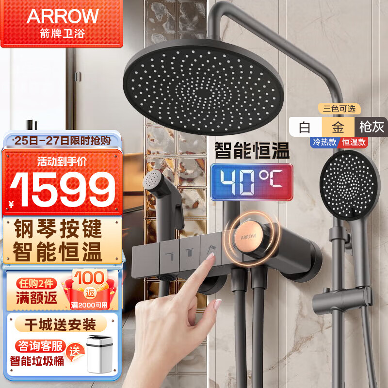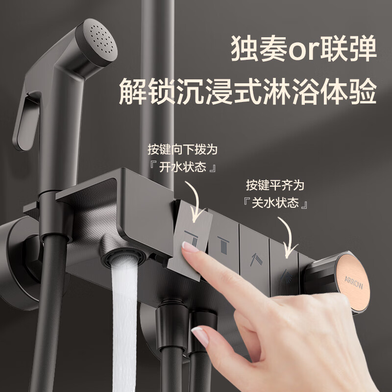 箭牌(ARROW) 淋浴花洒套装增压花洒全套莲蓬头淋雨器套装浴室花洒按键花洒 【枪灰色】按键丨恒温款价格:1899.00元!