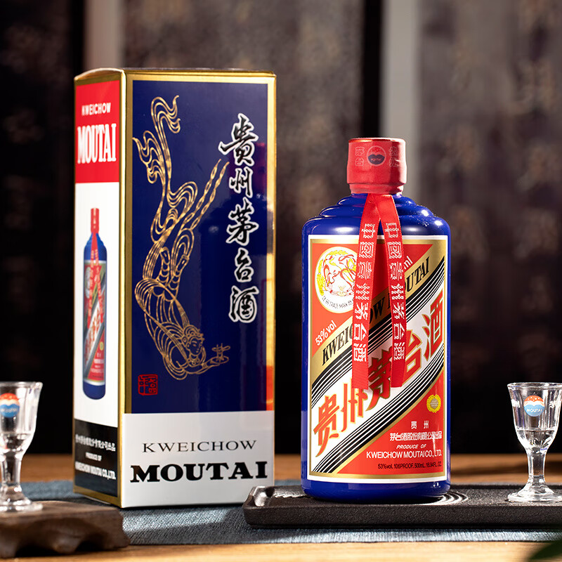 茅台(MOUTAI)颜色系列 蓝色 酱香型白酒 53度 500ml 单瓶装价格:4999.00元!