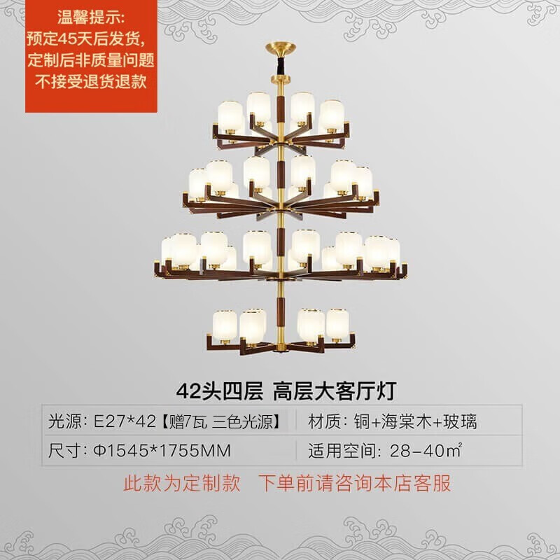 雷士(NVC)中式原木风工程定制客厅大吊灯别墅酒店大堂楼梯42头NDBD42A-001价格:15888.00元!