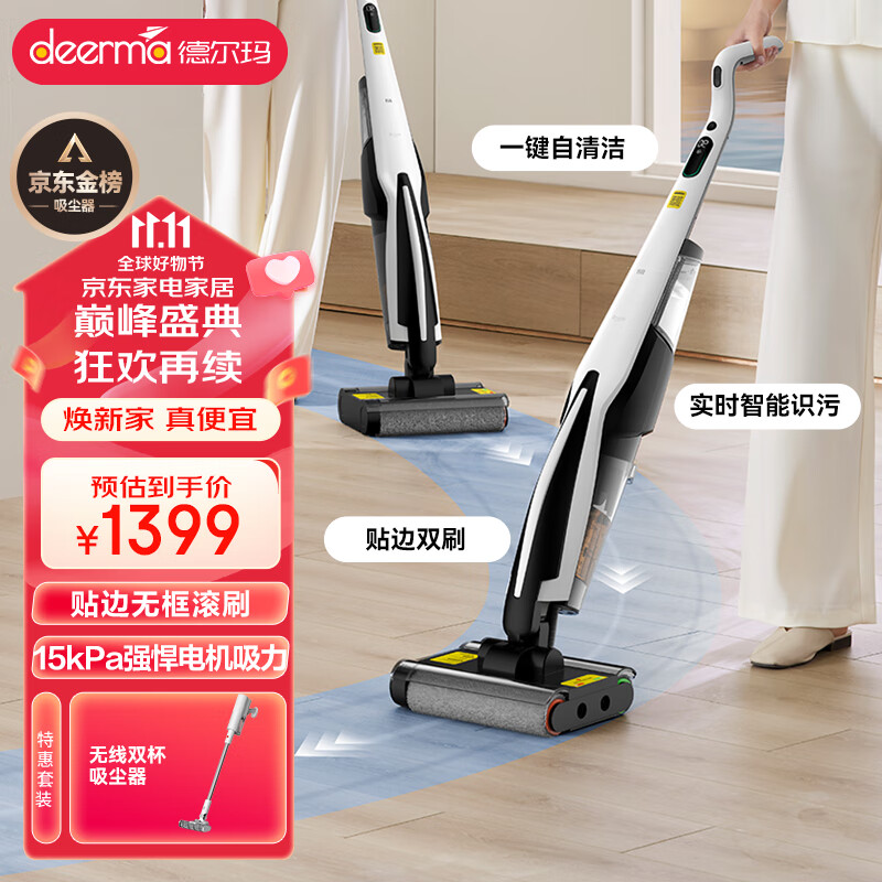 德尔玛(Deerma)P20套餐版 无线智能双刷洗地机 防缠绕沿边家用洗拖吸一体机电动拖把手持吸尘器扫地机自清洁价格:1399.00元!