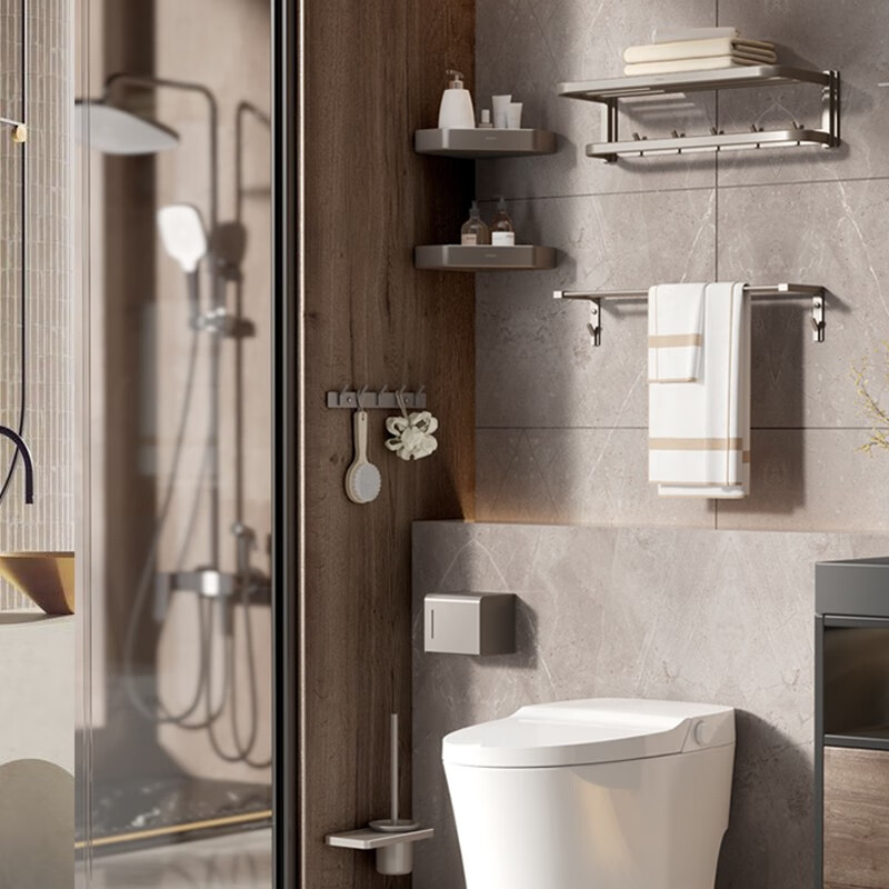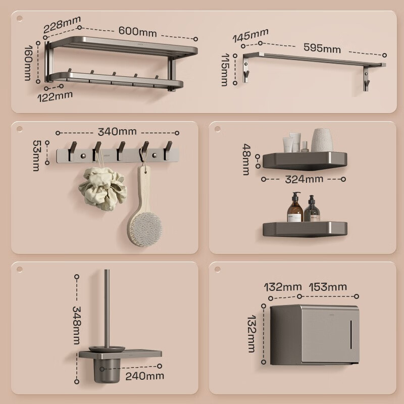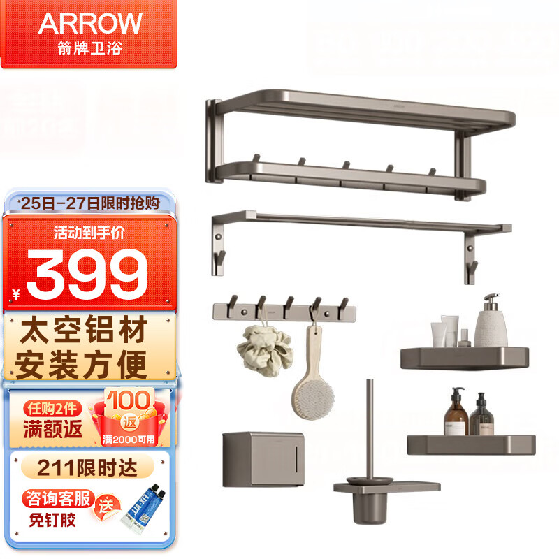 箭牌(ARROW)毛巾架太空铝免打孔卫生间浴室厕所洗手间浴巾架挂件置物架 【枪灰色】加宽扁管太空铝六件套价格:449.00元!