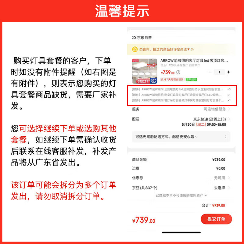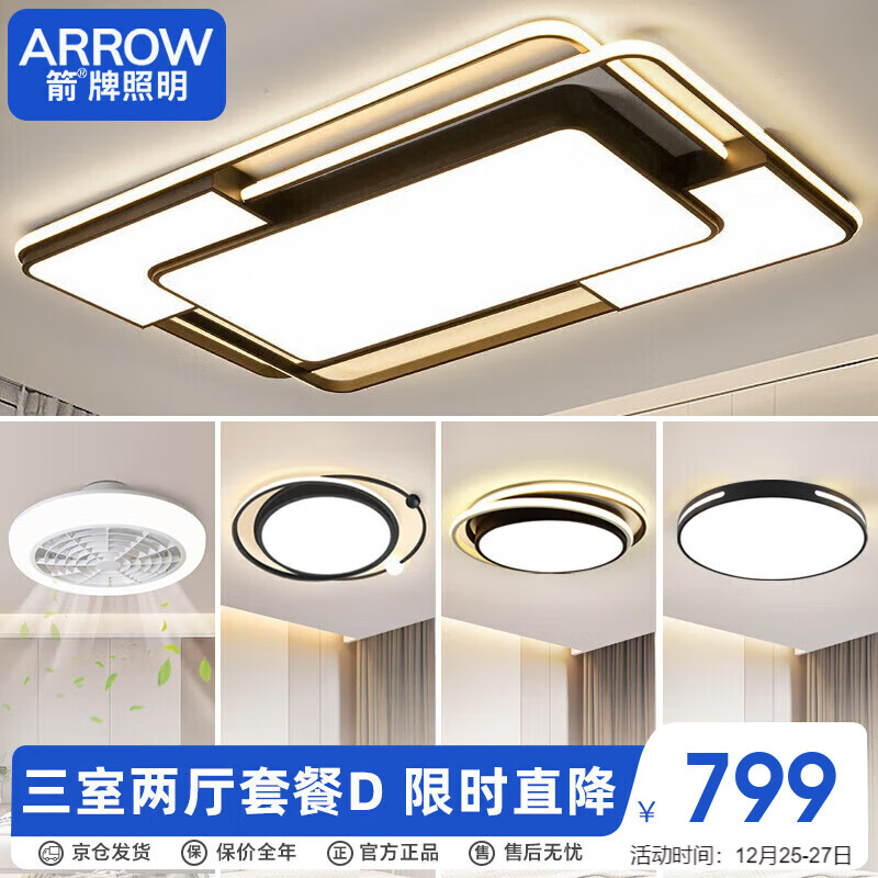 ARROW箭牌照明 大客厅灯LED北欧卧室铁艺吸顶灯具套餐中山灯具JPX096价格:799.00元!