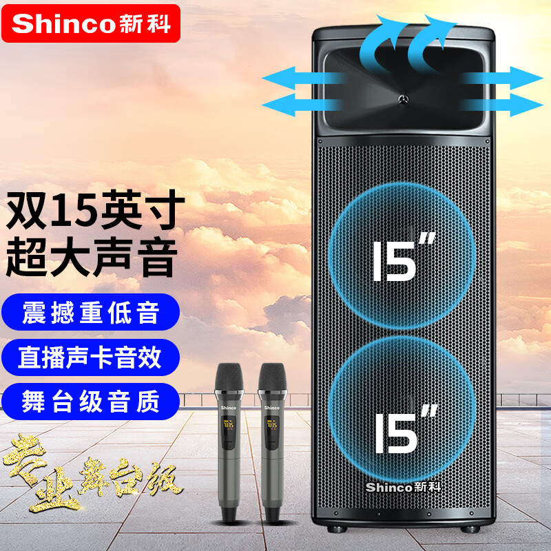 新科H15 双15英寸广场舞音响户外蓝牙音箱拉杆移动便携式室外ktv重低音播放器演出专业k歌 双咪价格:1999.00元!