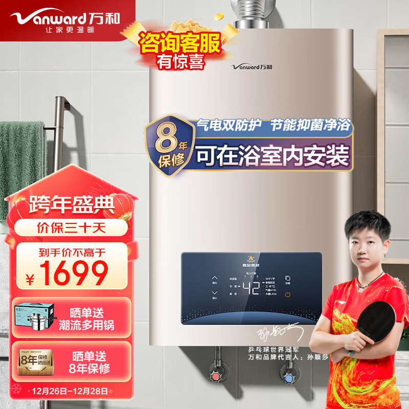 3、一直使用我们广东造的万和热水器已经很多年了,平衡式热水器可以装浴室内,出水快,升温快,噪音不大,对于我们楼层高的旧房子还有增压功能,很满意,外观好看,简约时尚,操作简单,价格也很优惠,会一直支持我们广东造的产品!