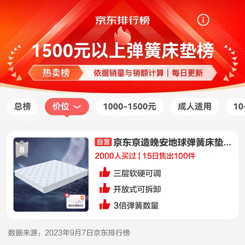 京东京造1.8*2m价格参考: