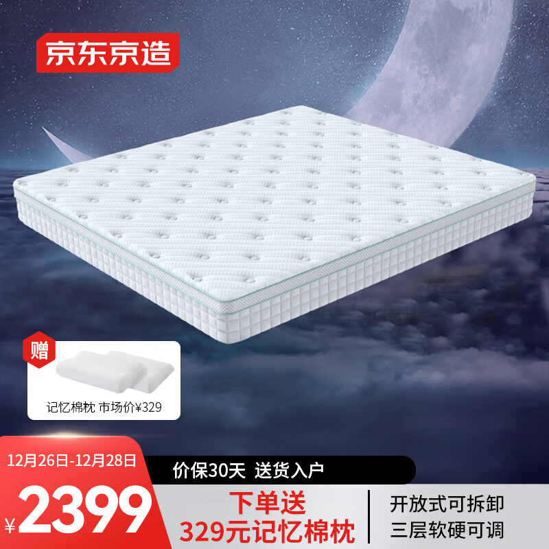 京东京造弹簧床垫 软硬可调|4D空气纤维|3倍弹簧 席梦思床垫1.8×2米MM03价格:2599.00元!