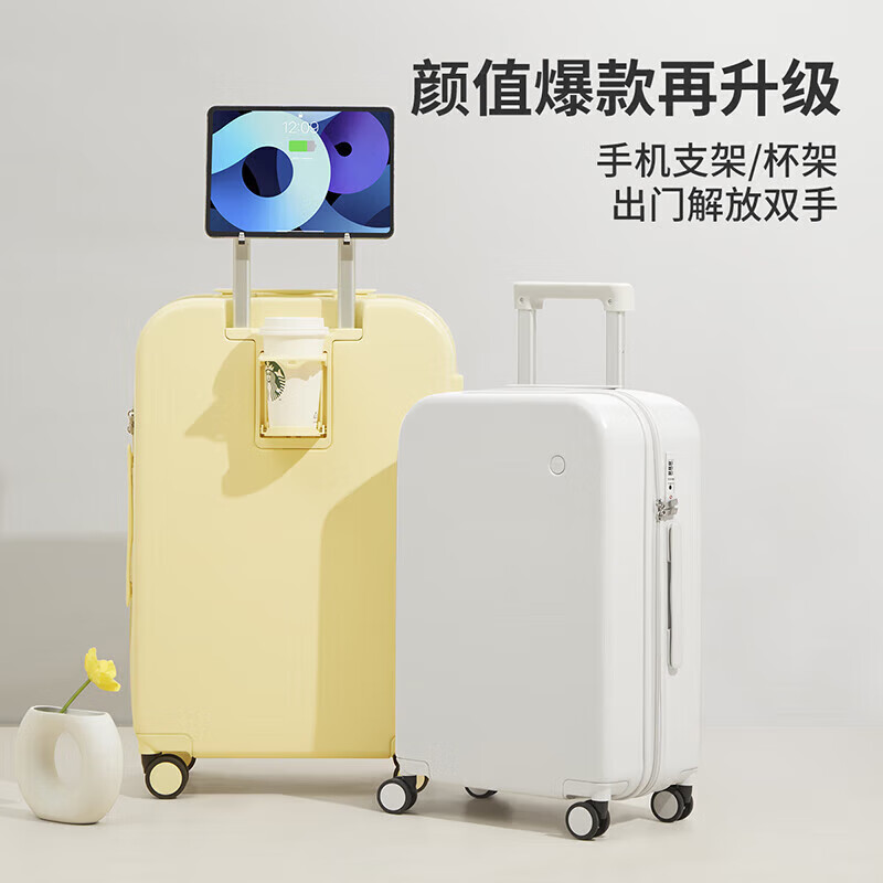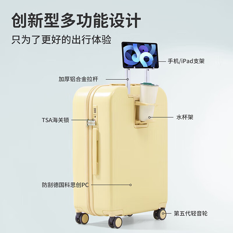 米熙多功能拉杆箱子行李箱大容量登机箱男20英寸旅行箱女高颜值云雀黄价格:499.00元!