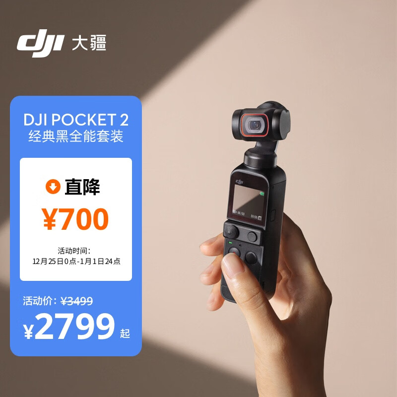 大疆 DJI Pocket 2 全能套装 灵眸口袋相机 运动相机 小型防抖vlog摄像机便携式全景相机+随心换1年版实体卡价格:2998.00元!