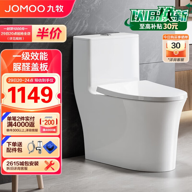 九牧(JOMOO)11368-2-2/41K-2马桶家用大冲力暴风虹吸节水抗菌坐便器400坑距价格:1399.00元!