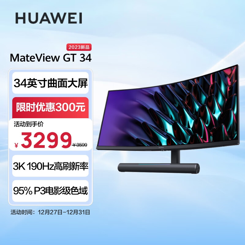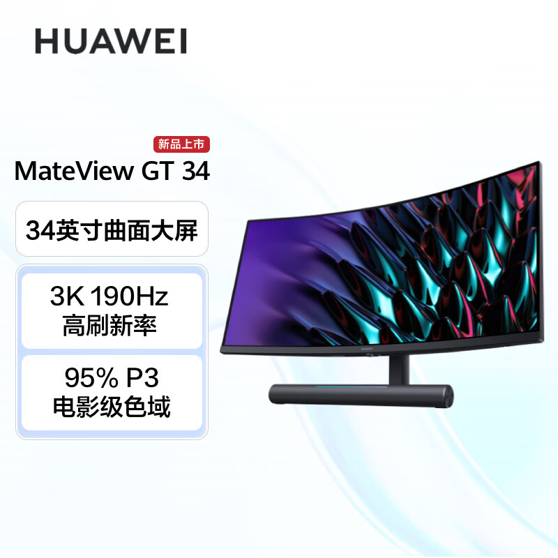 华为(HUAWEI)34英寸曲面显示器 WQHD 190Hz带鱼屏 快速液晶1ms Type-C SoundBar立体声场 触控灯条 游戏电竞价格:3299.00元!