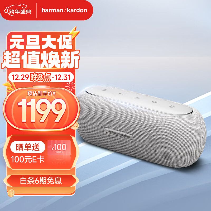 哈曼卡顿 LUNA 便携蓝牙音箱 赛道扬声器系统 超长续航 独立高音单元 IP67防水防尘 银灰色价格:1299.00元!
