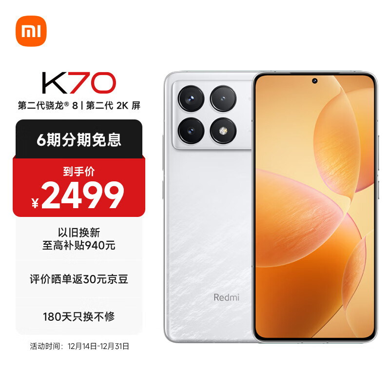 Redmi K70 第二代骁龙? 8 小米澎湃OS 第二代2K屏 120W+5000mAh 12GB+256GB 晴雪 小米红米K70 价格:2499.00元!