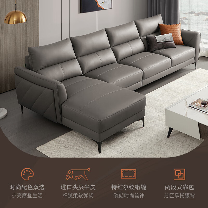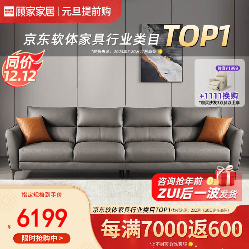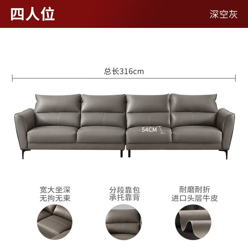 顾家家居真皮沙发小户型头层牛皮1107深空灰四人位组合价格:6199.00元!