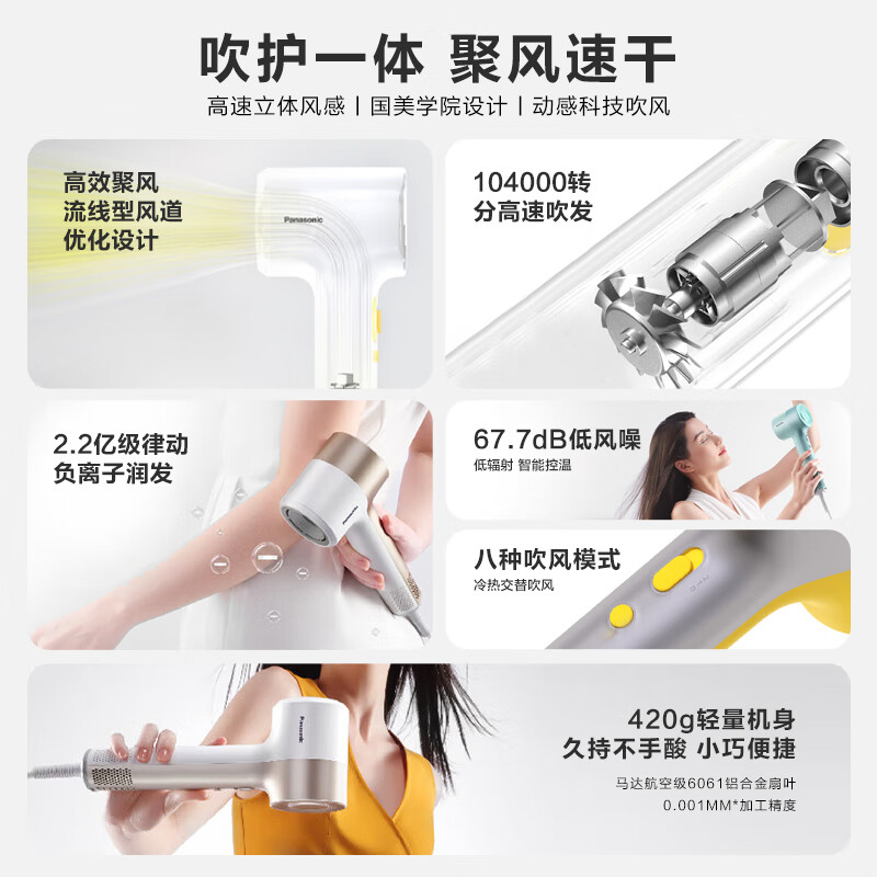 1、松下新款电吹风挺好的,包装严实,设计精美,做工精致,用料扎实,时尚颜值很高。使用效果很好,声音小,吹干头发很快,比较护发。