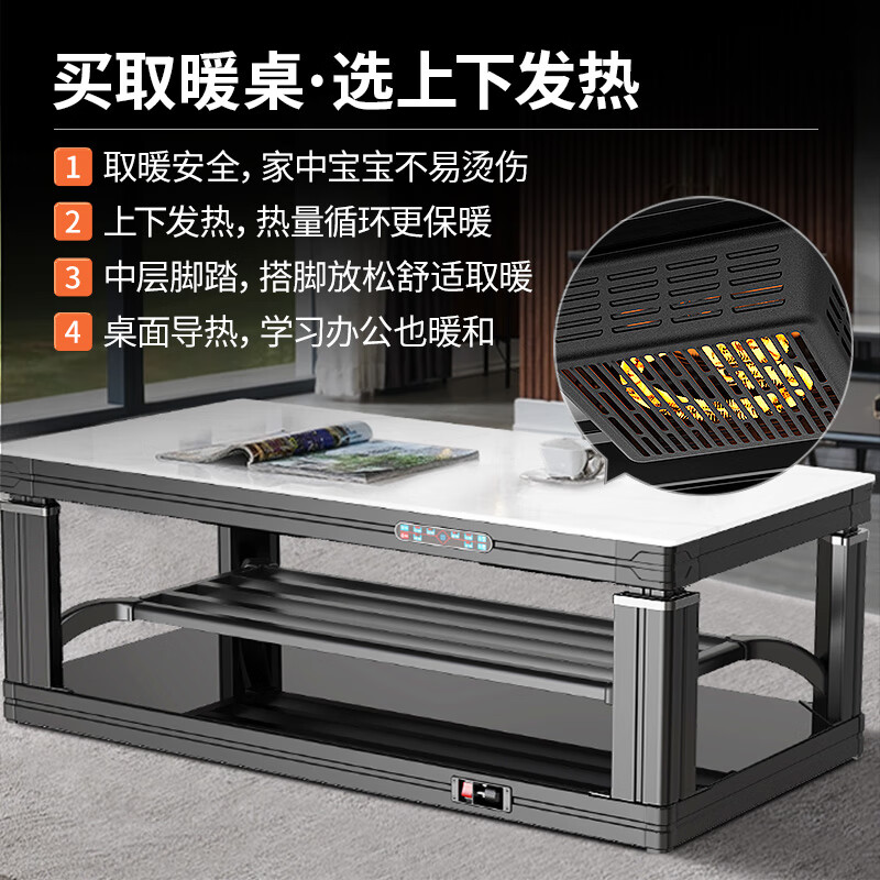 荣事达电暖桌1.2米石墨烯发热烤火茶几带语音控制升降电暖炉家用取暖器取暖桌长方形餐桌烤火桌RC-C1价格:2123.00元!