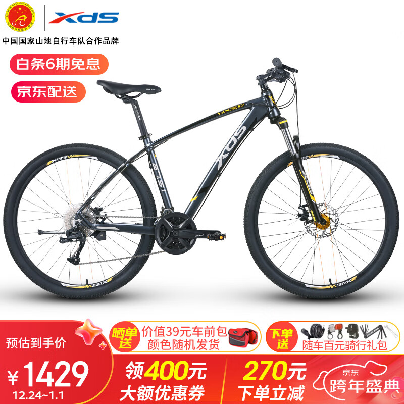 喜德盛山地自行车英雄300运动健身27速锁死前叉机械碟刹 灰黄17.5价格:2099.00元!