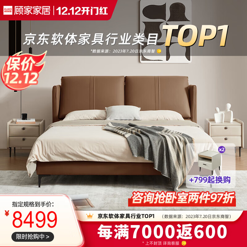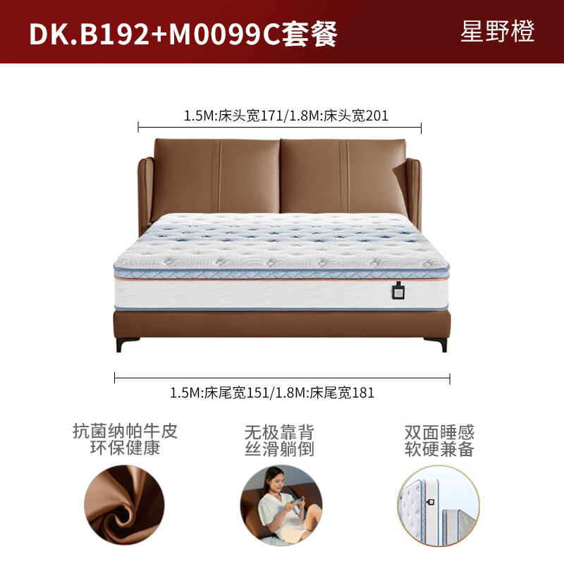 顾家家居(KUKA)手动无极抗菌纳帕皮床双人床192+亚运垫0099C星野橙1.8米价格:8499.00元!