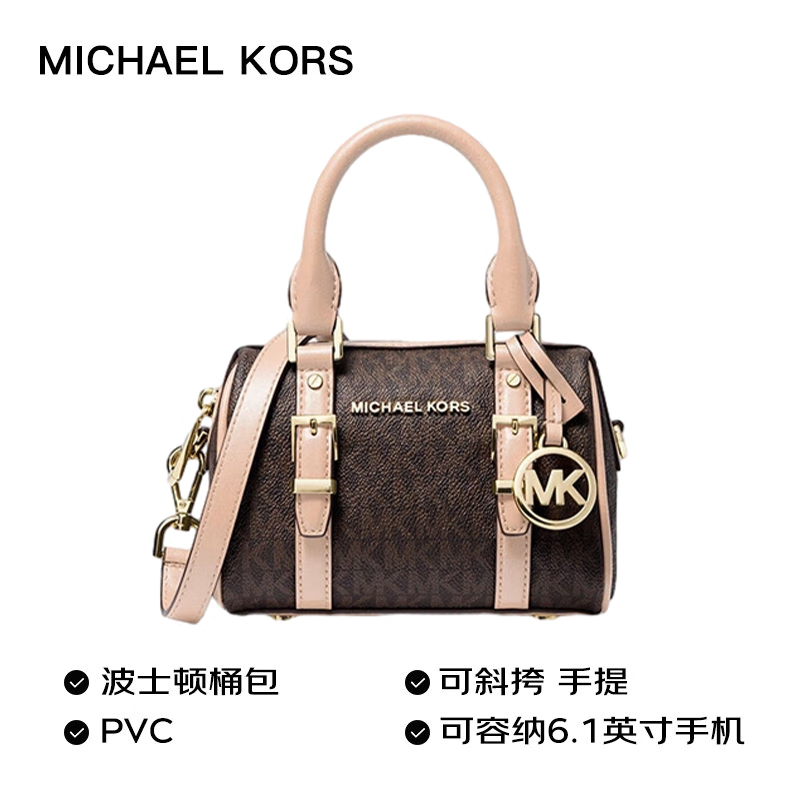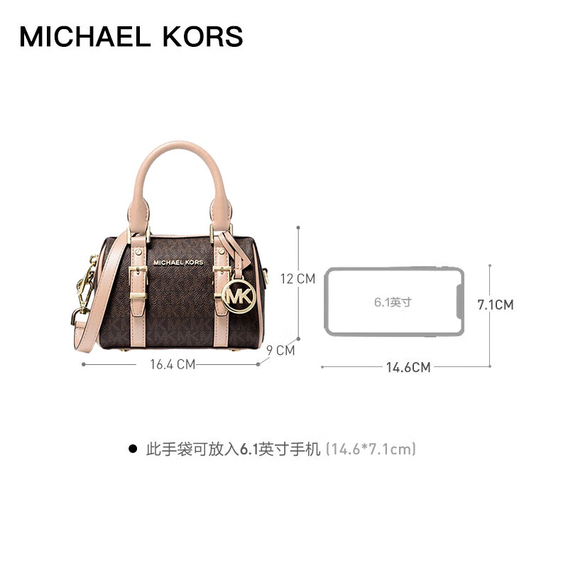 MICHAEL KORS礼物送女友MK女包BEDFORD单肩手提斜挎包 超小号 深棕色/柔粉价格:859.00元!