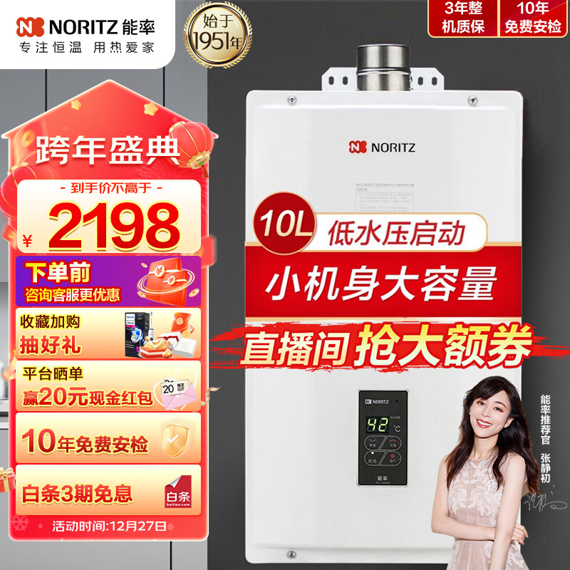 能率(NORITZ)燃气热水器 10升 智能极速恒温 低水压启动 GQ-10A3FEX(天然气)(JSQ20-A3)价格:2198.00元!