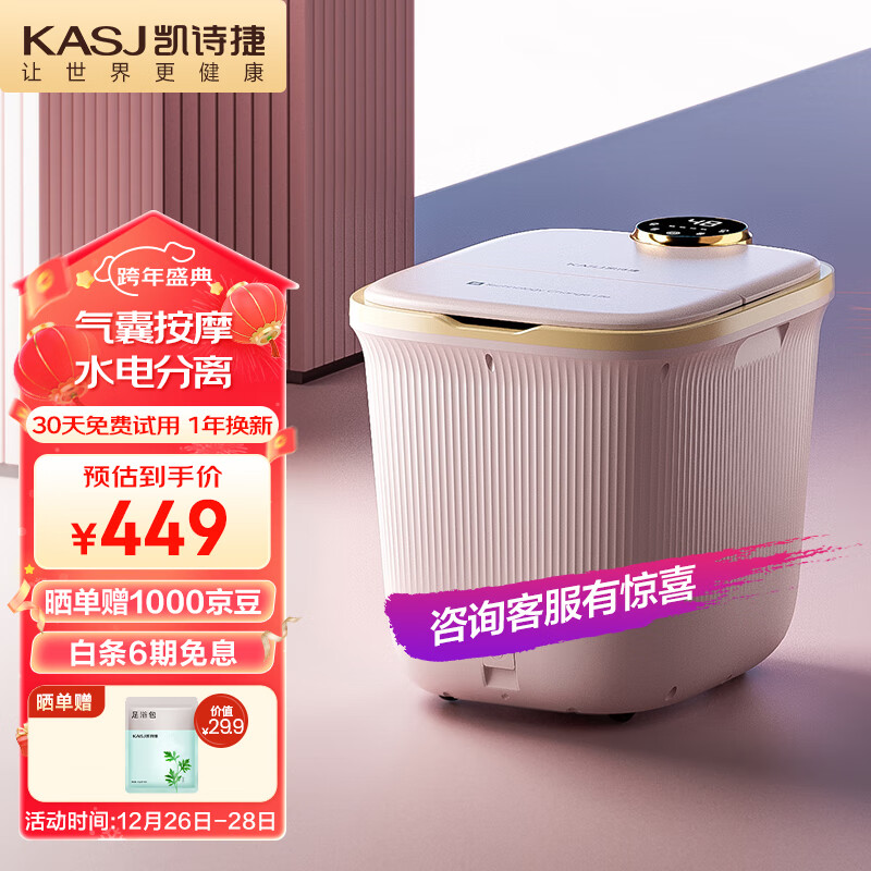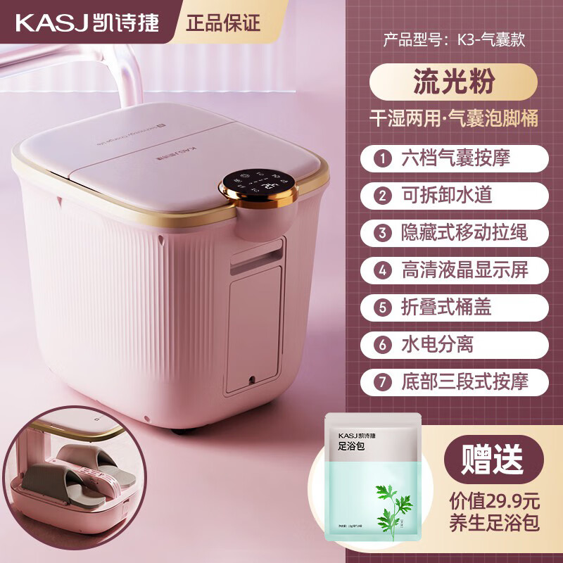 凯诗捷(KASJ)泡脚桶足浴盆全自动气囊按摩洗脚盆电动加热泡脚盆洗脚桶 生日礼物礼品送父母长辈 K3粉色价格:549.00元!