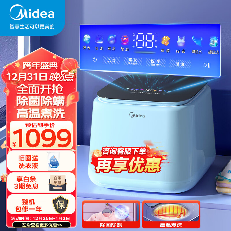 美的(Midea)内衣洗衣机全自动 高温煮洗内衣裤洗衣机 1公斤小波轮除菌除螨 小型母婴婴儿迷你洗衣机MNB10-01L价格:1099.00元!