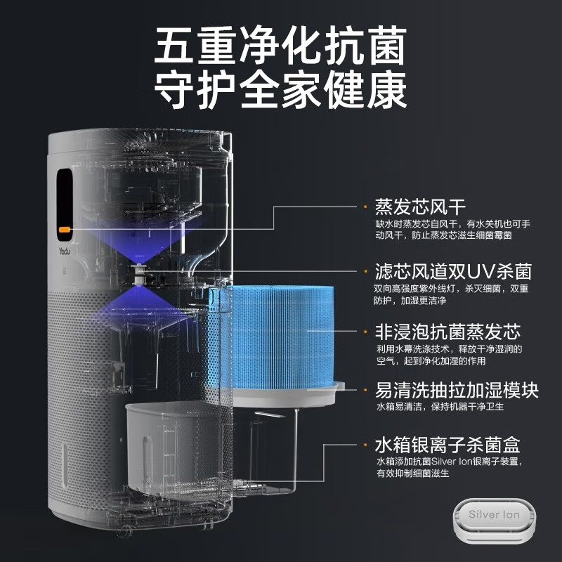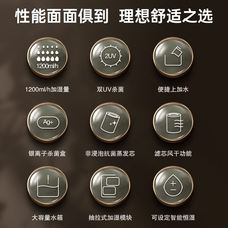 1、外观大气,加湿量大加湿效率高,水箱容量也够大放在办公室用很合适.五重抗菌滤芯可以自动风干,不用担心发霉问题,上加水很方便.