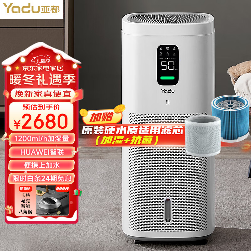 4、亚都(YADU)无雾加湿器卧室婴儿家用办公室空调房空气加湿器大容量上加水增湿器华为智联SZ1200-TK101(Hi)¥3380.00