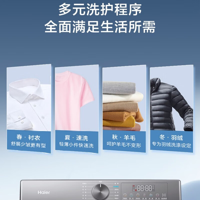 4、一直都在用海尔这个品牌,外观漂亮,很静音,衣服洗的特干净,操作简单,