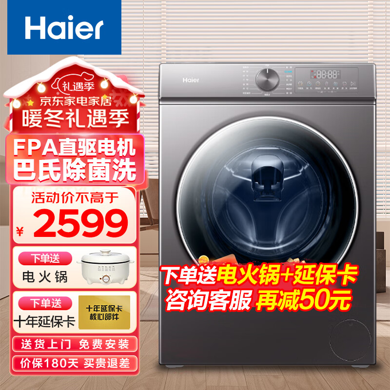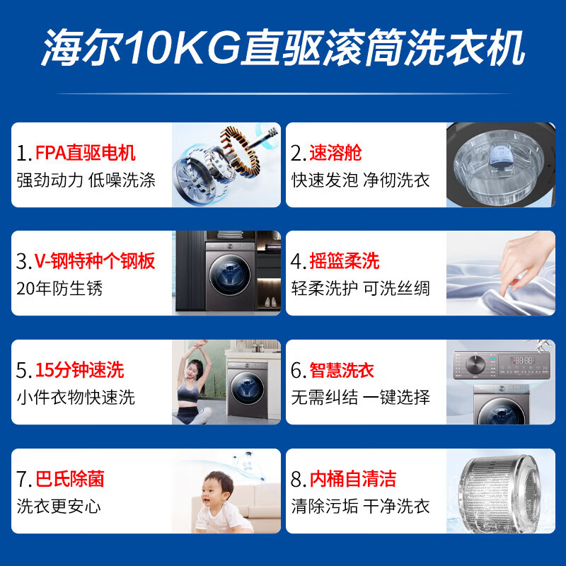 海尔(Haier)全自动滚筒洗衣机10公斤直驱变频家用大容量除菌螨筒自洁一级能效高洗净比智慧洗G10080B12S[家电]价格:2699.00元!
