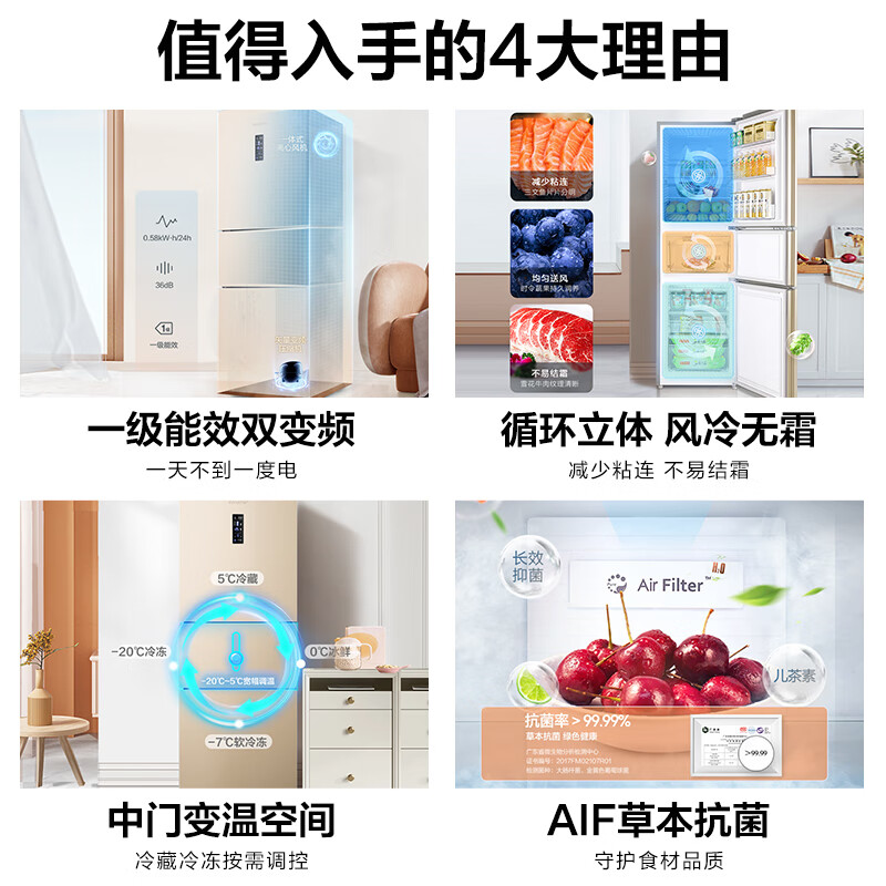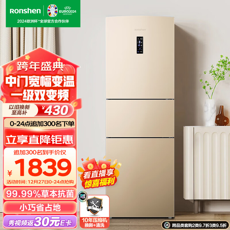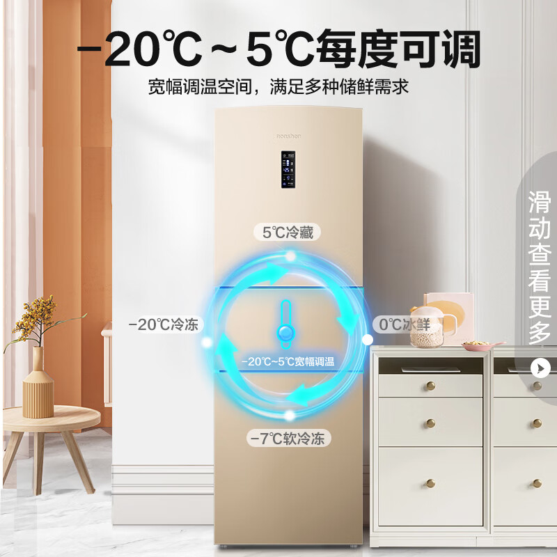 容声(Ronshen)253升变频一级能效三开门小冰箱家用小型风冷无霜不占地BCD-253WD16NPA中门宽幅变温价格:1599.00元!