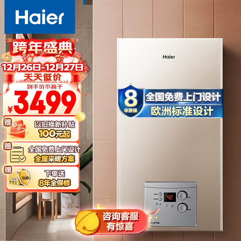 海尔(Haier)免费设计板换式燃气壁挂炉热水器天然气采暖炉暖气片地暖全屋供暖适用120平 L1PB20-HJ3(T)价格:3499.00元!