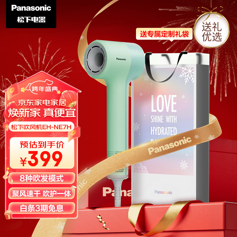 松下7H缤纷筒 高速吹风机 大风力吹头发 负离子电吹风速干护发 家用吹风筒 生日新年礼物送女生女友 NE7H缤纷筒|莫奈绿价格:399.00元!