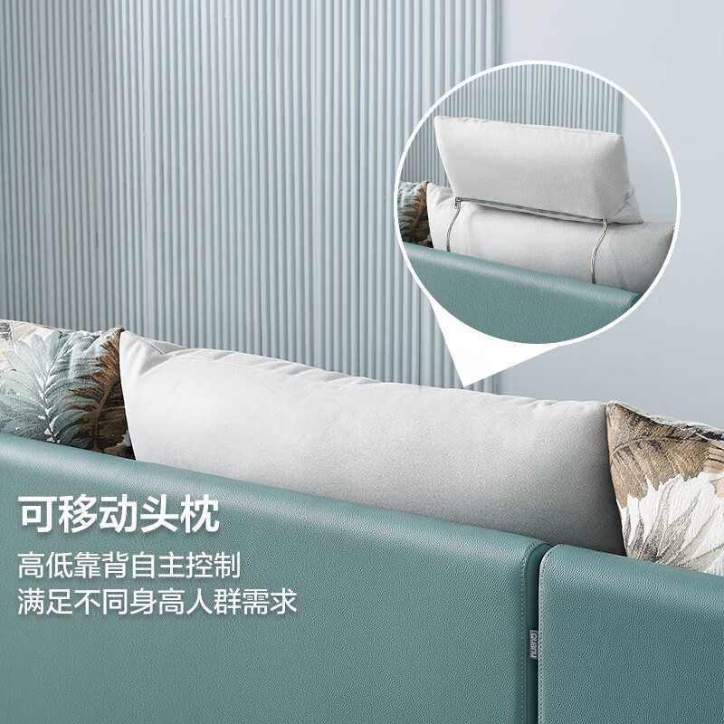 1、总体来说我很满意。首先是材质,布皮材质。我个人比较喜欢布沙发,带点皮的其实也挺好,粘了东西容易清洗。然后就是整体的色彩搭配,还挺好看的~然后我这款我个人觉得不太适合小户型,我房子94平的,沙发摆了以后感觉没得地方放别的东西了。
