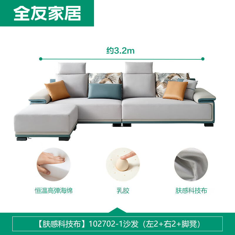 全友家居 沙发现代简约皮布沙发可拆洗科技布艺沙发客厅家具102702价格:4568.71元!