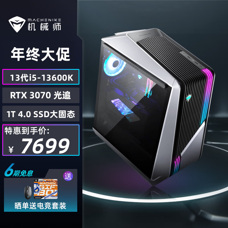 机械师(MACHENIKE)未来战舰III代 游戏设计电竞台式主机电脑(13代i5-13600K 16G 1TSSD RTX3070)240水冷价格:7699.00元!