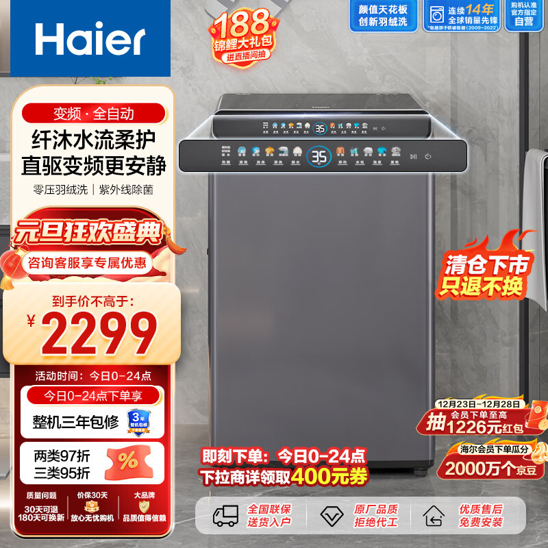 海尔(Haier)波轮洗衣机全自动家电 以旧换新脱水机 紫外线内衣除菌 直驱 大容量10公斤EBC100B39Mate7价格:2699.00元!