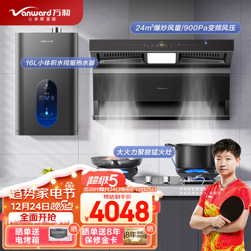 万和(Vanward)烟灶热三件套 三腔7字型大吸力1000Pa变频油烟机燃气灶具热水器 WL860+C5L90S+ME5D16(天然气)价格:4048.00元!